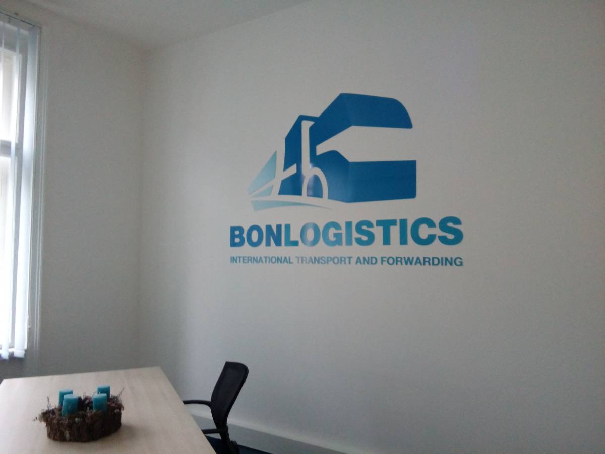 Pro chebskou společnost Bon Logistics s.r.o., která se zabývá mezinárodní dopravou a spedicí, jsme realizovali zajímavý projekt výroby a instalace velkoplošných firemních log do interiéru. Loga z PVC materiálu mají tloušťku 3 mm, jsou polepené samolepkou s laminací a byla připevněná na zdi kanceláří a jednacích prostor společnosti. Výsledek posuďte sami na přiložených fotografiích.